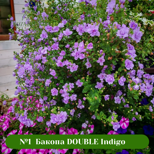 Бакопа Scopia Double Indigo – очень красивый сорт с яркими махровыми цветочками сиреневого выразительного оттенка. Цветет очень обильно и продолжительно: с весны до поздней осени.
