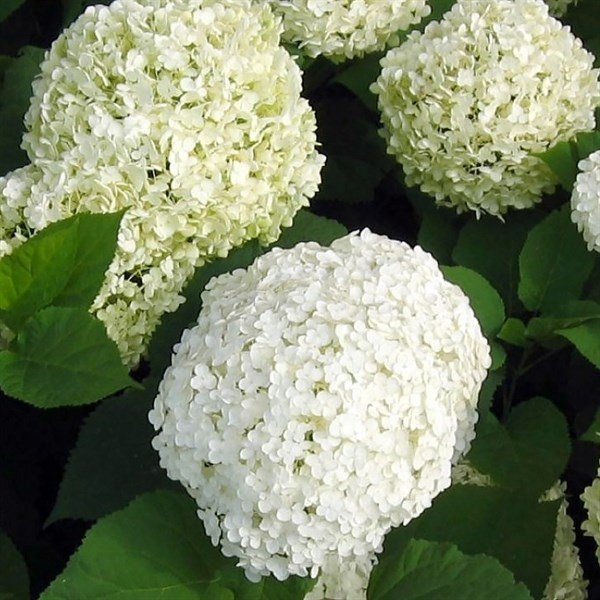 Соцветия до 25–35 см в диаметре. При распускании цветки имеют легкий зеленовато-белый оттенок, затем становятся молочного или кремового цвета, в полном роспуске они ослепительно-белые. Цветение продолжительное с июня по сентябрь.