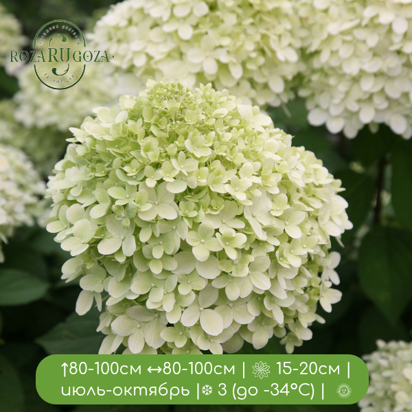 Little Alf — очень компактный сорт метельчатой гортензии, отличающийся крупными кремово-белыми соцветиями, которые сохраняют окраску на протяжении всего сезона. Куст плотный, округлой формы, достигает около 80–100 см в высоту и ширину. Цветение обильное, продолжительное — с середины лета до октября. Подходит как для открытого грунта, так и для контейнерной посадки.