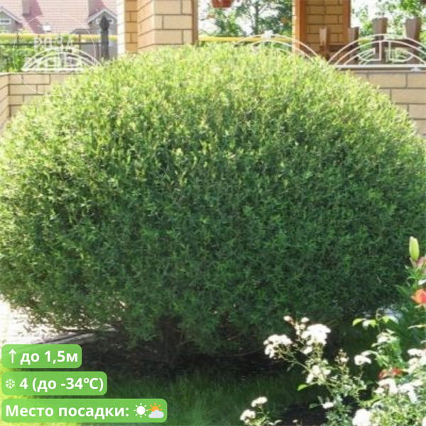 Для культивирования подобных растений подойдут почвы с самым разным плодородием. Высота кустарника достигает примерно 1,5 м. В ширину он разрастается до 2 м. Несмотря на довольно внушительные размеры, тонкость и изящество ветвей внутри шаровидной кроны придает культуре неповторимое очарование. Изнутри ветки окрашиваются в лимонный тон с оранжевым отливом.