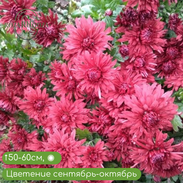 Хризантема корейская Цыганская шаль имеет крупные, махровые, винно-вишнёвые цветы. Кустики 50-60см.