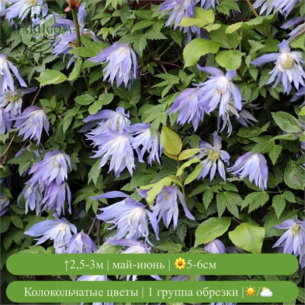 - Цветки: голубые, колокольчатые, 5–6 см