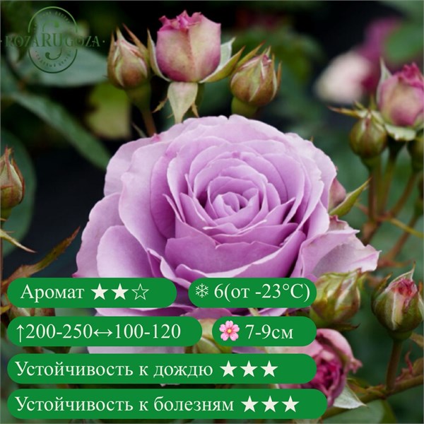 Quicksilver — одна из самых необычных плетистых роз от Kordes, покоряющая своей редкой окраской. Цветки густомахровые, крупные, диаметром 7-9 см, классической розеточной формы. Окраска лепестков нежно-лиловая с сиреневым оттенком, что делает сорт особенно эффектным и утончённым. Цветение повторное, обильное, с июня до осени. Аромат лёгкий, приятный, с тонкими фруктовыми нотами. Побеги длинные, 200–250 см, гибкие, хорошо облиственные, легко формируются на шпалерах и арках.